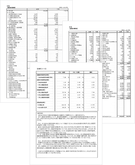 講義をもとに分析を行い、分析結果から対象企業の強みや弱みをグループ等で考えていただきます。